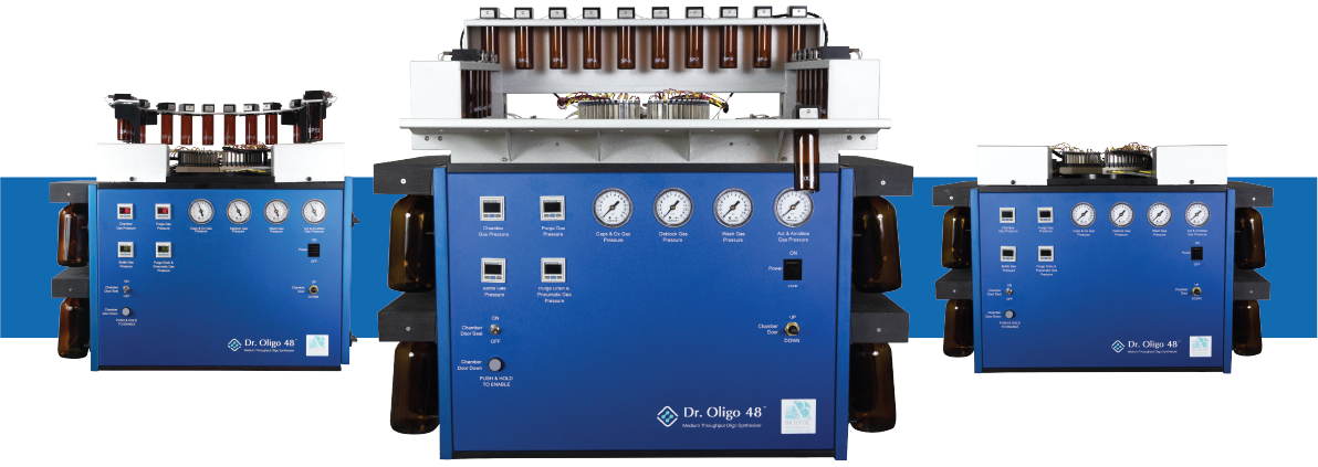 The Dr. Oligo 48 includes fully tested protocols and initial synthesis media from 5 nmol to 5 umol per column for turn-key synthesis beginnings.