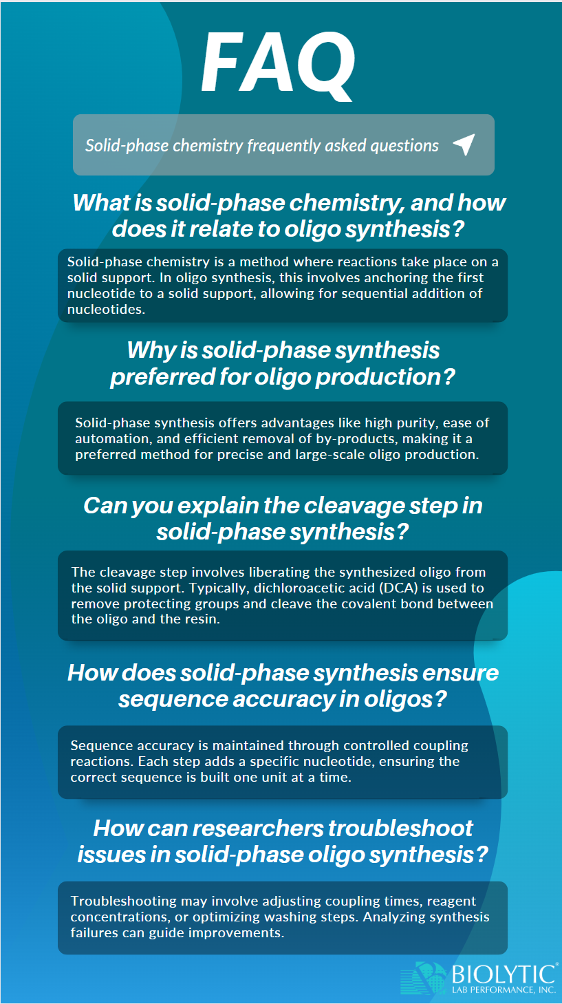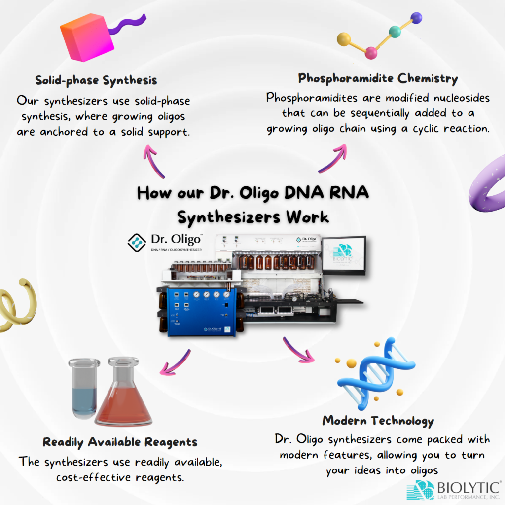 Today, let’s unravel the complexities of Oligonucleotide Synthesis, with a special focus on the intricate dance of molecules in the solid-phase chemistry steps. At Biolytic Lab Performance, Inc., our commitment to advancing biotechnology is reflected in the precision and expertise embedded in every product we offer – from consumables to DNA RNA oligo synthesizers and post-synthesis accessories.