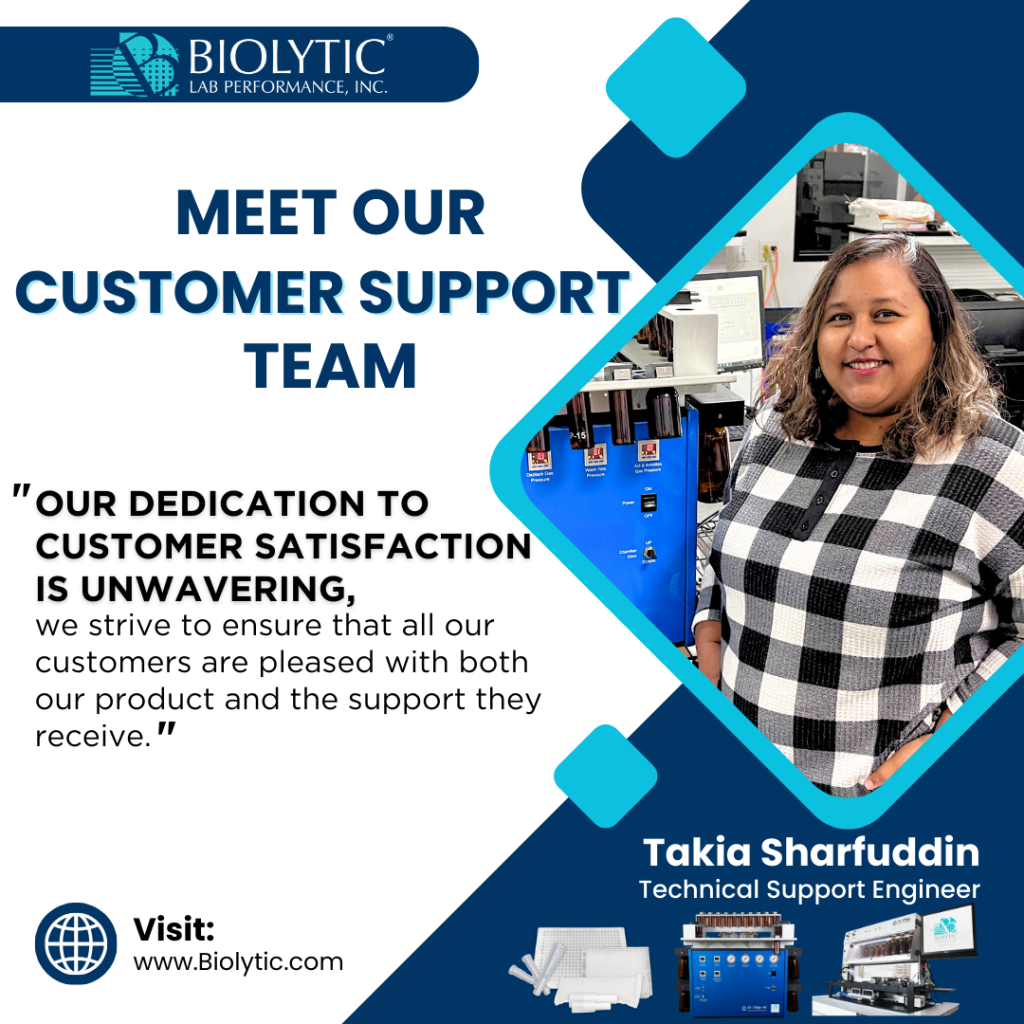Behind every successful innovation is a dedicated team providing support. Biolytic’s Applications Team, led by Synthesis Consumables Specialist Jarrod Zehm, and our Technical Support Team, represented by Technical Support Engineer Takia Sharfuddin, play crucial roles in the success of our customers.