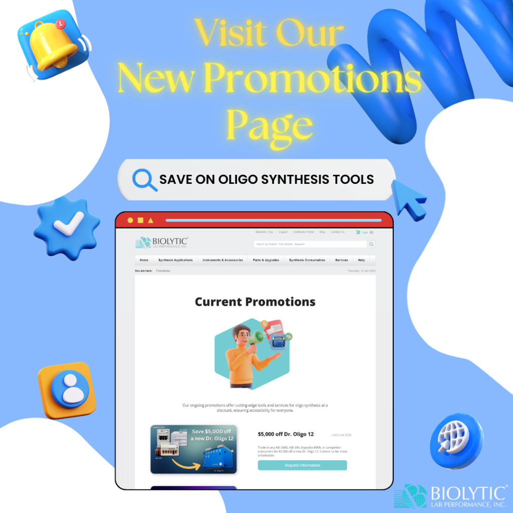 🎉 Explore Biolytic’s New Promotions Page for Cutting-Edge Oligo Synthesis Tools! 🎊